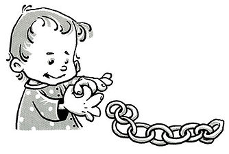 «Цепочка». Соедините в кольцо большой и указательный пальцы одной руки. Внутри получившегося «колечка» соедините большой и указательный пальцы другой руки — получается цепочка. Цепочку можно сделать и из других пальцев — большой и указательный, большой и средний и т. д.